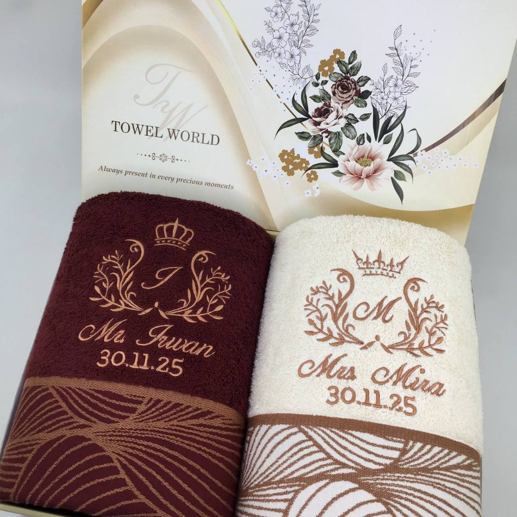 Paket 2 Handuk Terry Palmer Luxury Egyptian + Box + Kartu Ucapan + Bordir / Handuk Seserahan Pernikahan / Handuk Couple