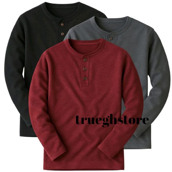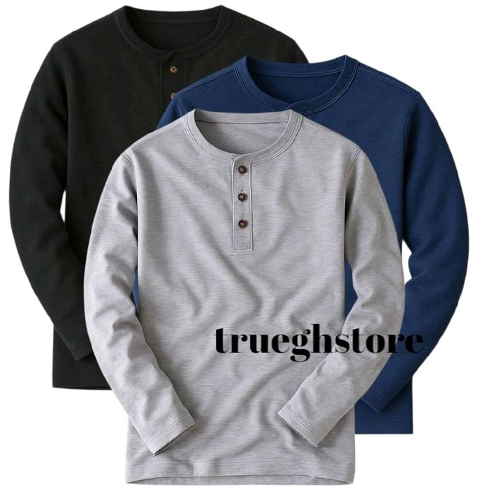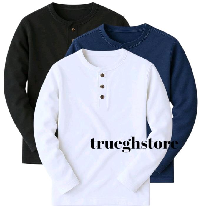 3PCS KAOS KANCING UNISEX DISTRO LENGAN PANJANG TERBARU PRIA OBLONG BAJU POLOS SURFING TEBAL KEREN KATUN ABU HITAM LEMBUT