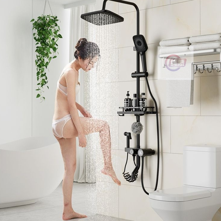 Shower Mandi Set 4 Fungsi Panas-Dingin Dengan Faucet / Hitam Kepala Shower /Shower Kamar Mandi 1 Set