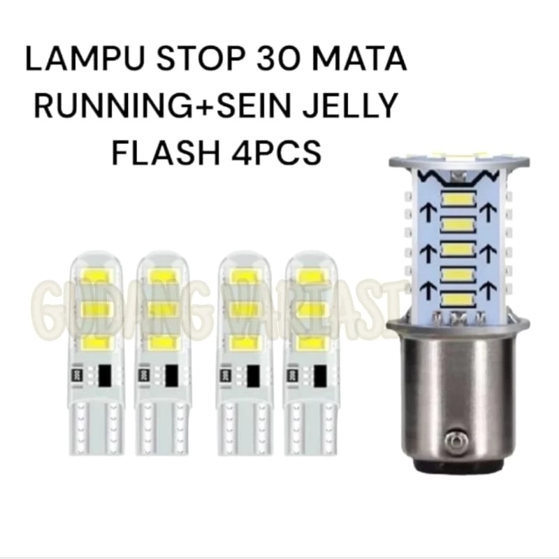 LAMPU STOP REM BELAKANG MOTOR 30 MATA LED RUNNING + SEIN JELLY NON KEDIP 4PCS UNIVERSAL