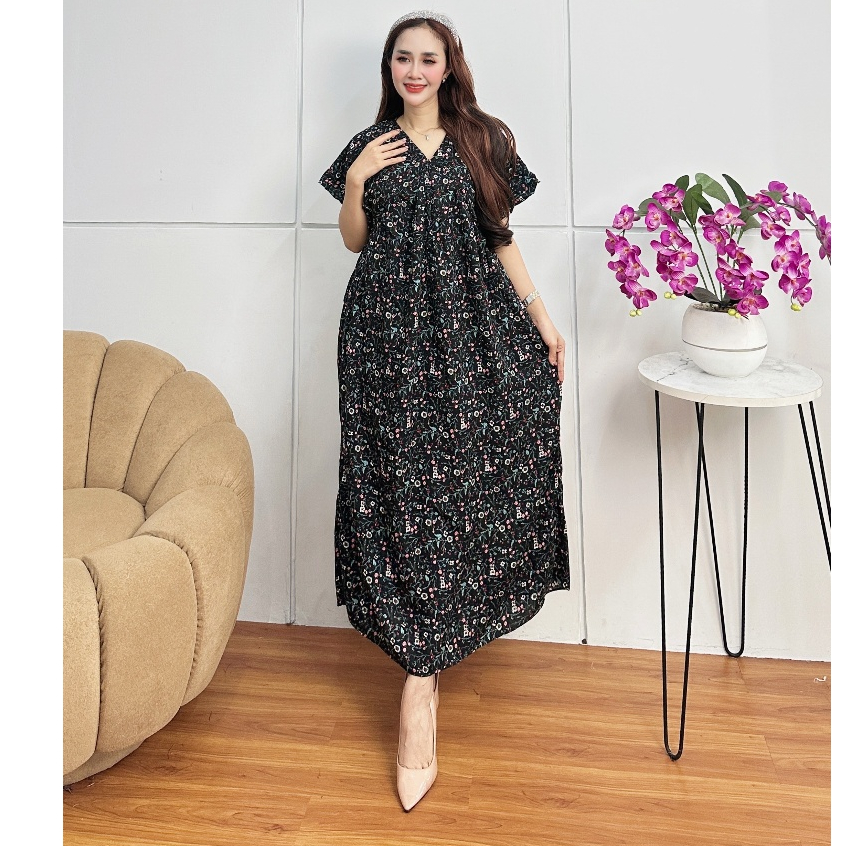 Daster Wanita Rayon Premium – Motif Bunga Kekinian, Nyaman Adem, Busui Friendly, Baju Tidur Bumil