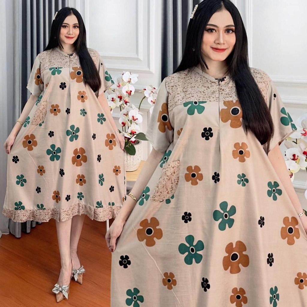 Daster Rayon Jumbo Busui Bumil Resleting Depan Lengan Pendek Batik Wanita Kekinian Batikbatara