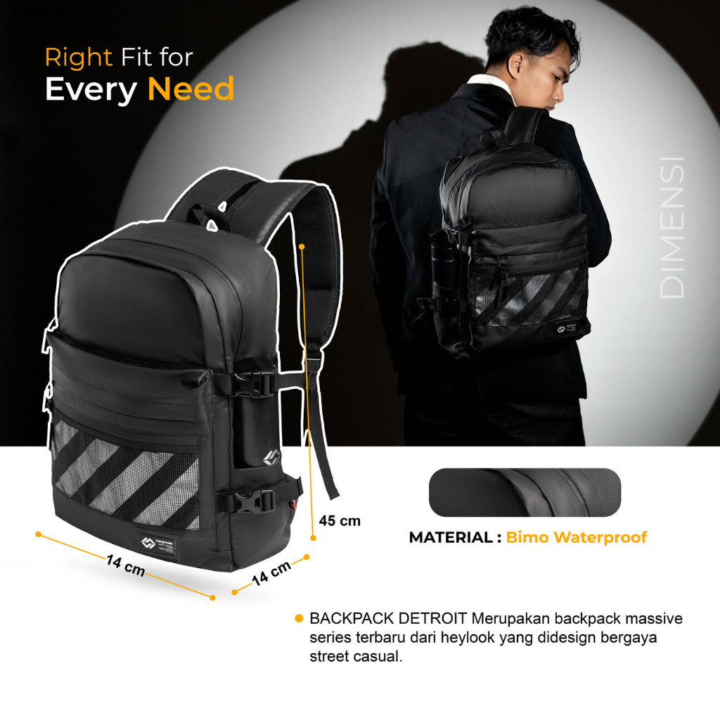 Heylook Official - Backpack Pria Detroit Tas Laptop Punggung Water Resist Backpack Cowok Tas Leptop Wanita Sekolah Kulia
