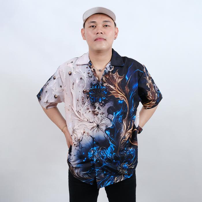 BAJU KEMEJA KEKINIAN PRIA WANITA DOWEAR MOTIF ELEGANT BLUE 241 PRINTING - DEWASA S
