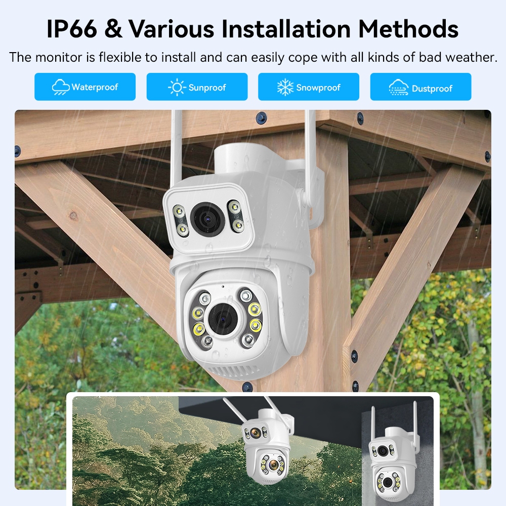 Rolte 12Mp 6K Hd Kamera Three Lens Ip Cctv Wireless 8Mp 4K Dual Lensa Tahan Air Ip66 Ptz Camera