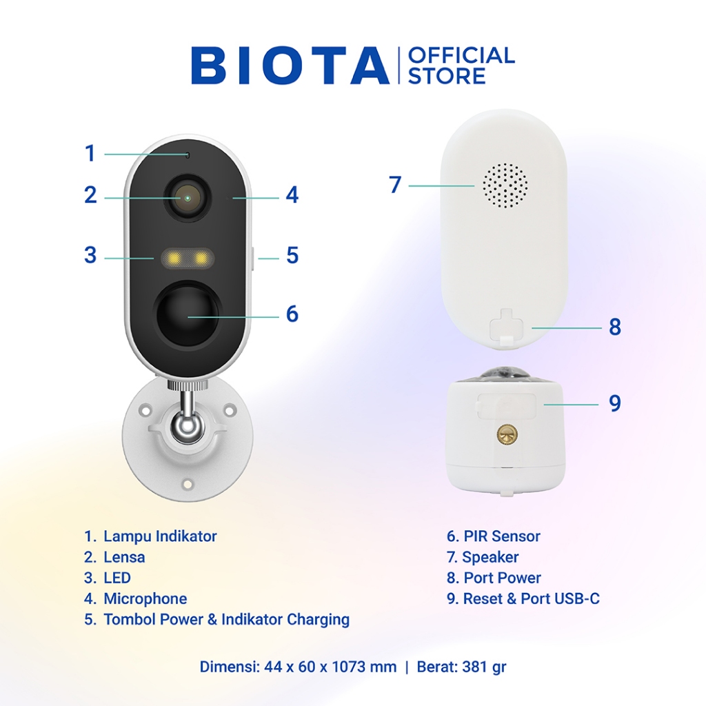 Biota Smart Camera Battery Fixed - Kamera Cctv Wifi Jarak Jauh Tanpa Kabel