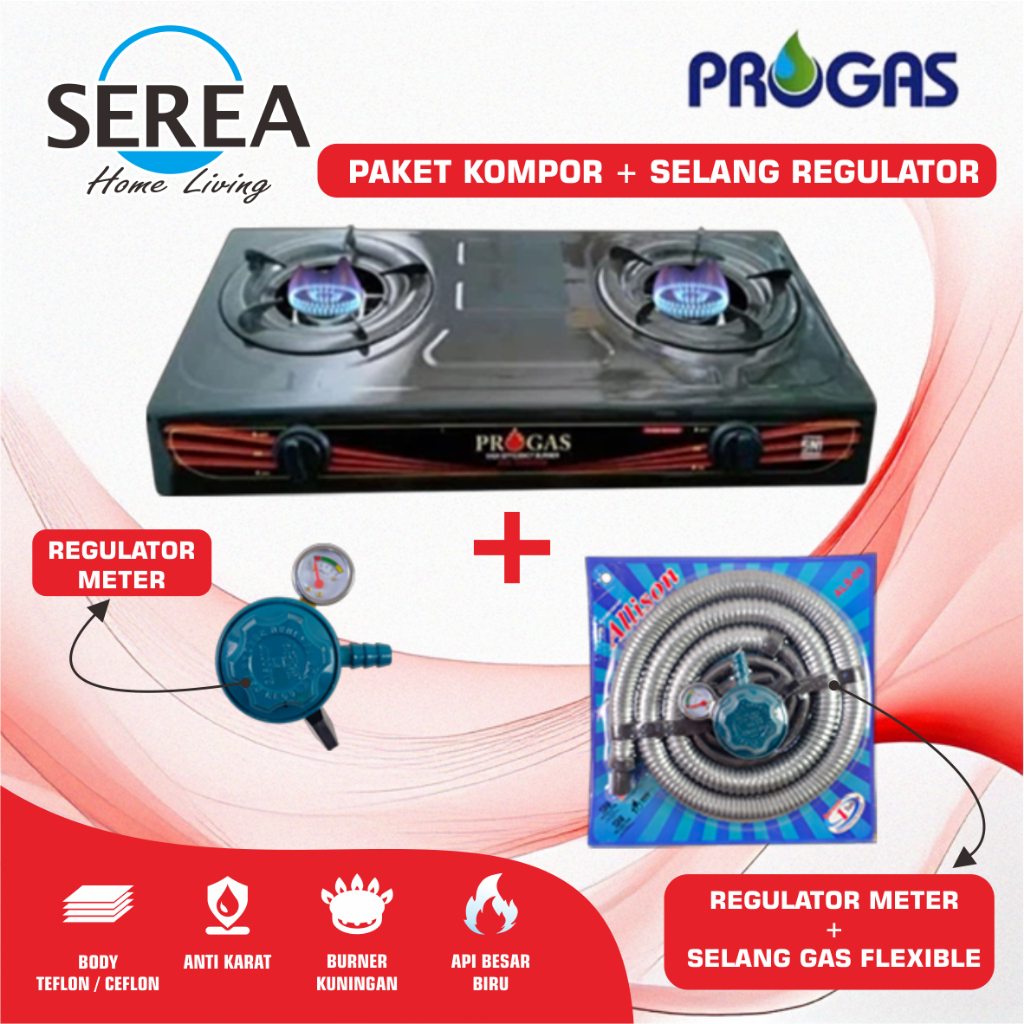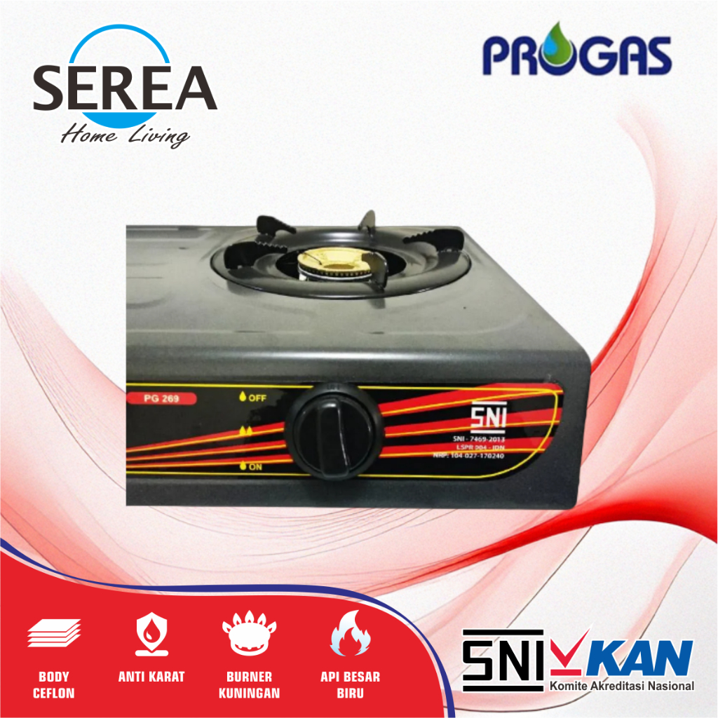 Kompor Gas 2 Tungku Progas Ceflon/Teflon Pg-269 Api Biru Kualitas Premium Sni