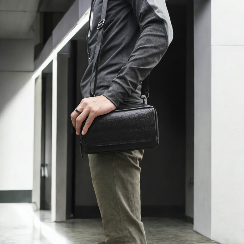 Caliandravieri Clutch Pria Kulit Asli | Zukha Mini Slingbag Multifungsi Handbag Compact Tas Slempang