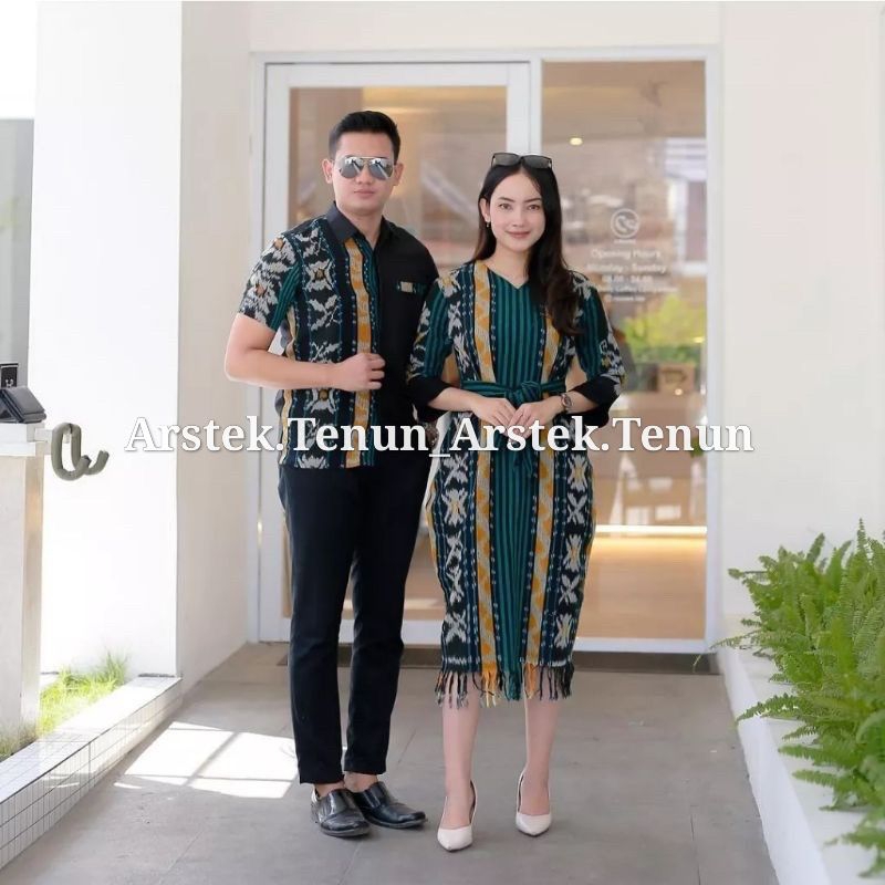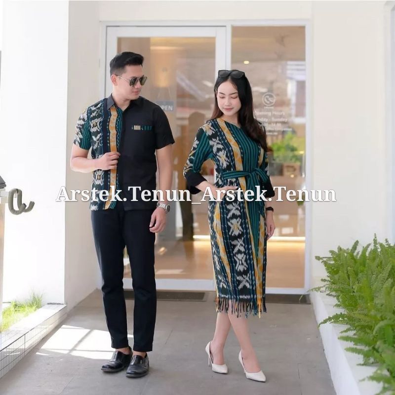Set Couple Tenun Alexandra Dress Baju Pasangan Couple Pria Wanita Kondangan Prewedding Natal Imlek Lebaran