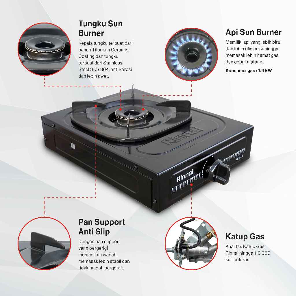 Rinnai Ri-201-S Kompor Gas 1 Tungku Sun Burner Original Garansi Resmi