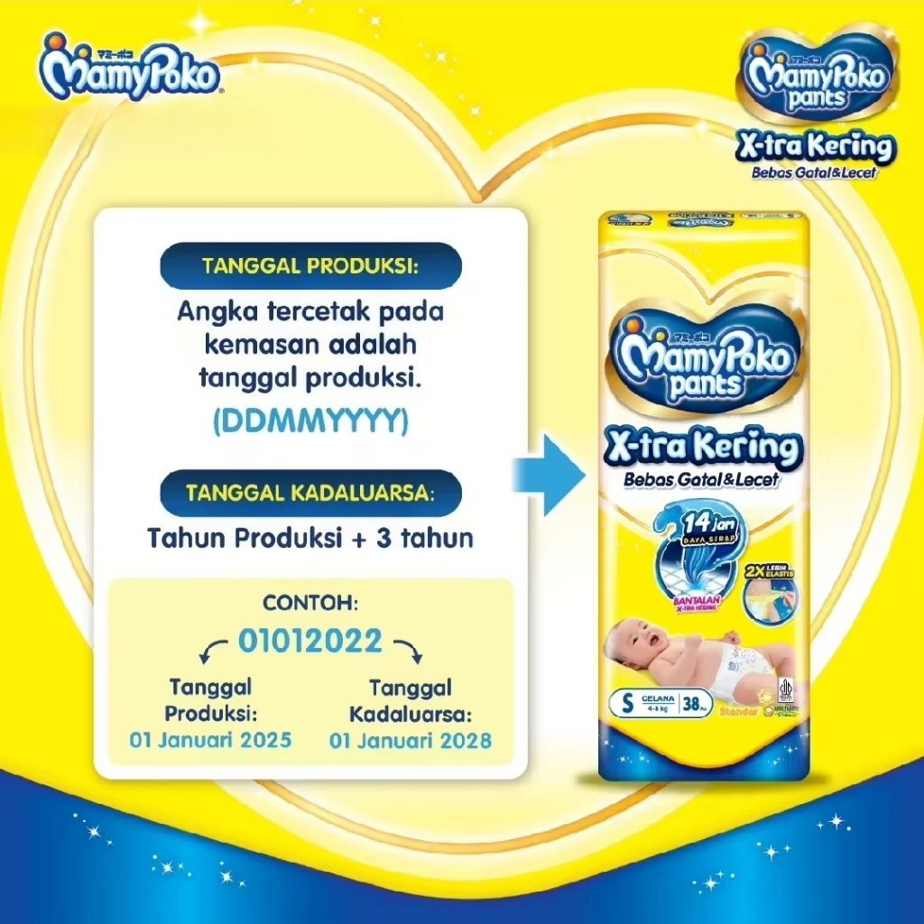 Mamypoko Xtra Kering Nbs44 S38 M32 L28 Xl26 Xxl24 (Paket 2-Bal)