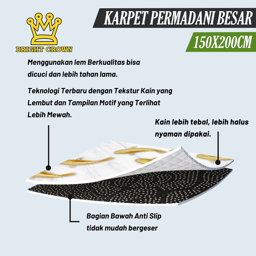 Bright Crown Beli Lokal Karpet Lantai Eropa Premium 150X200Cm Bahan Polyester Anti Slip R Tamu
