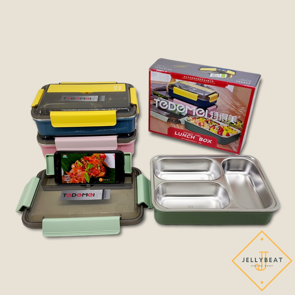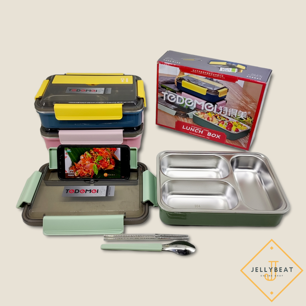 Kotak Makan Stainless 3 Sekat Tedemei 25x18.5x6.5cm 1.1L(6592)