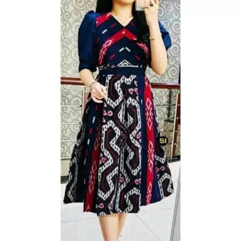 Baju Tenun Wanita, Dress Tenun Wiru Etnik Wanita, Dress Tenun Wiru Mix Toyobo,Dres Pest