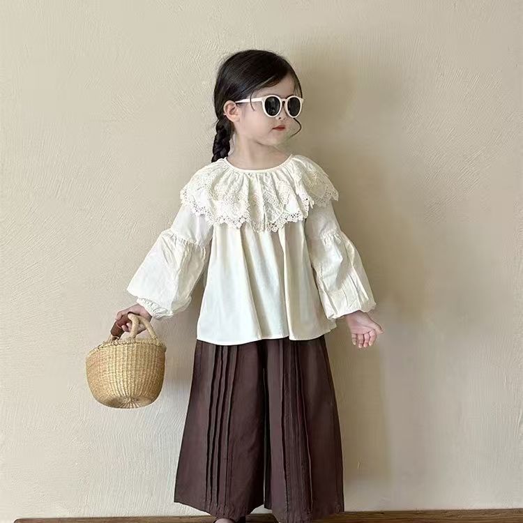 Korea Style Setelan Anak Perempuan Atasan Legan Panjang Vest Lace+Celana Panjang Bahan Katun Baju Anak Perempuan Pakaian