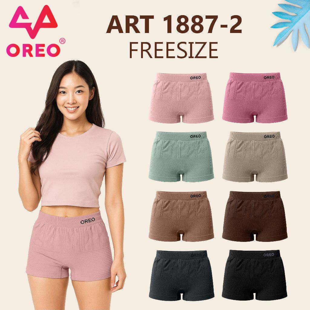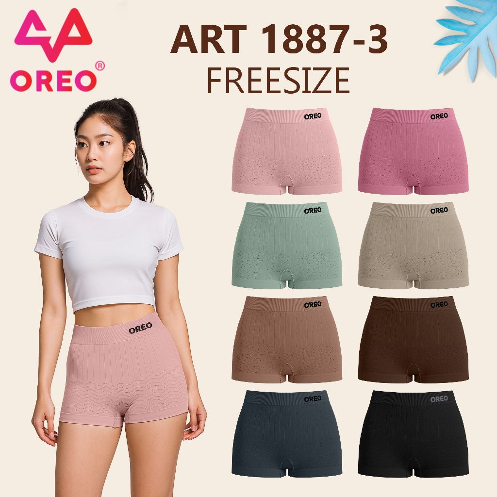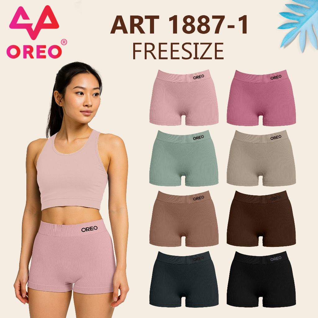 Oreo[3Pcs]-1887 Celana Dalam Boxer Wanita Remaja Wanita Rajut Stretch, All Size