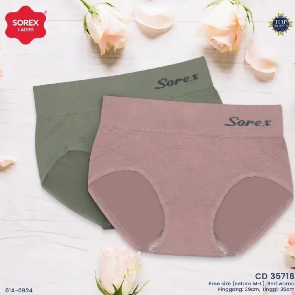 Sorex (3 Pcs, 6 Pcs) Cd Semi Korset Celana Dalam Wanita Dewasa Sorex 35716 Rajut Midi Corak Random Elastis Nyaman