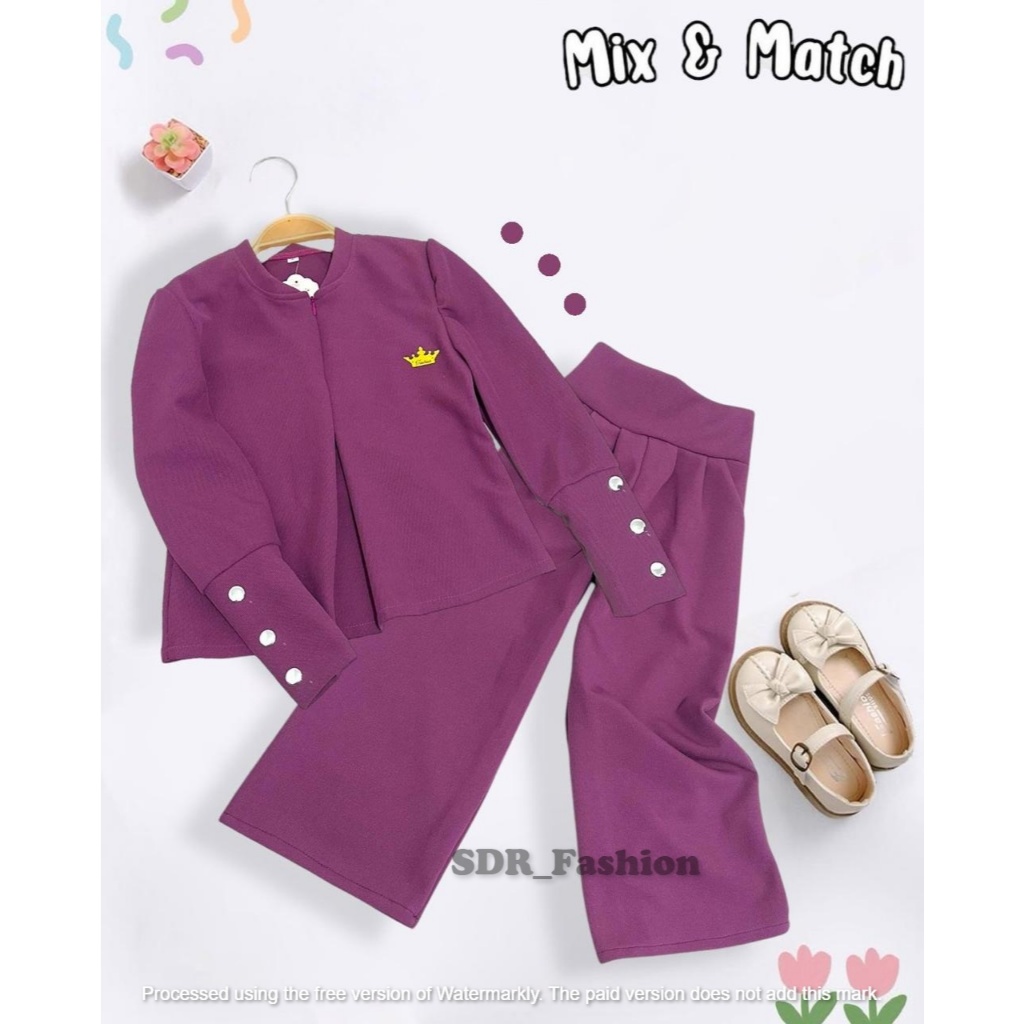 One Set Anak Terbaru 2025 Celana Kulot Model Lengan Kancing/Inara Untuk Anak Perempuan Usia 1 Sampai 12 Tahun