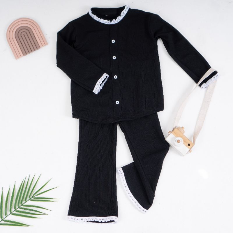One Sett Anak Perempuan Jennie Blouse And Flare Pants With Lace Knit Usia 1-10 Tahun Maximal Bb 25 Kg Fashion