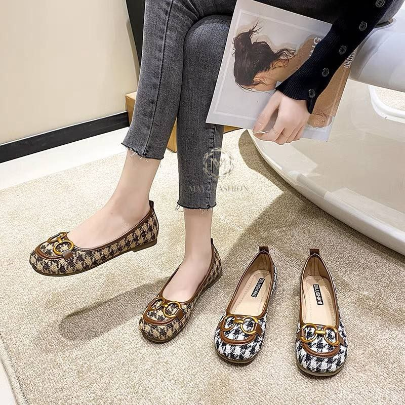 Flat Shoes Wanita Import Sepatu Slip On Ballerina Kekinian Bisa (With Box)