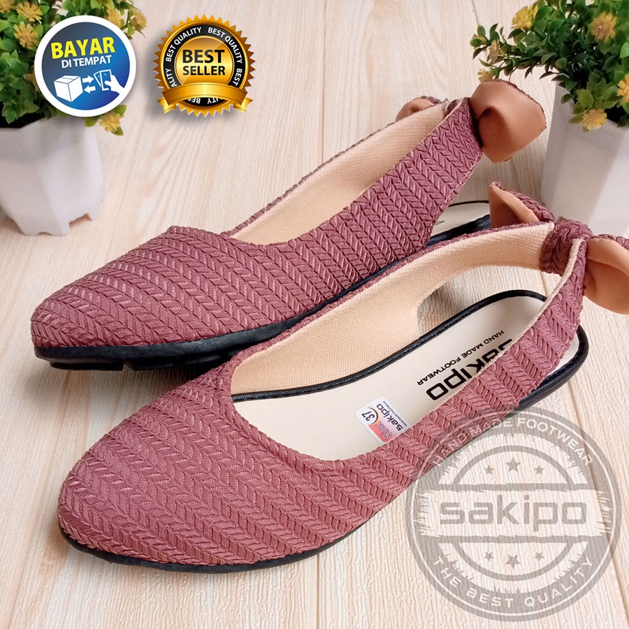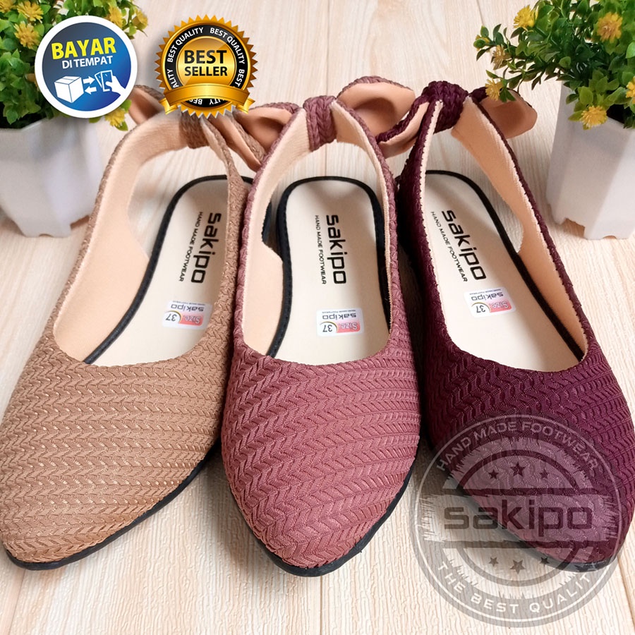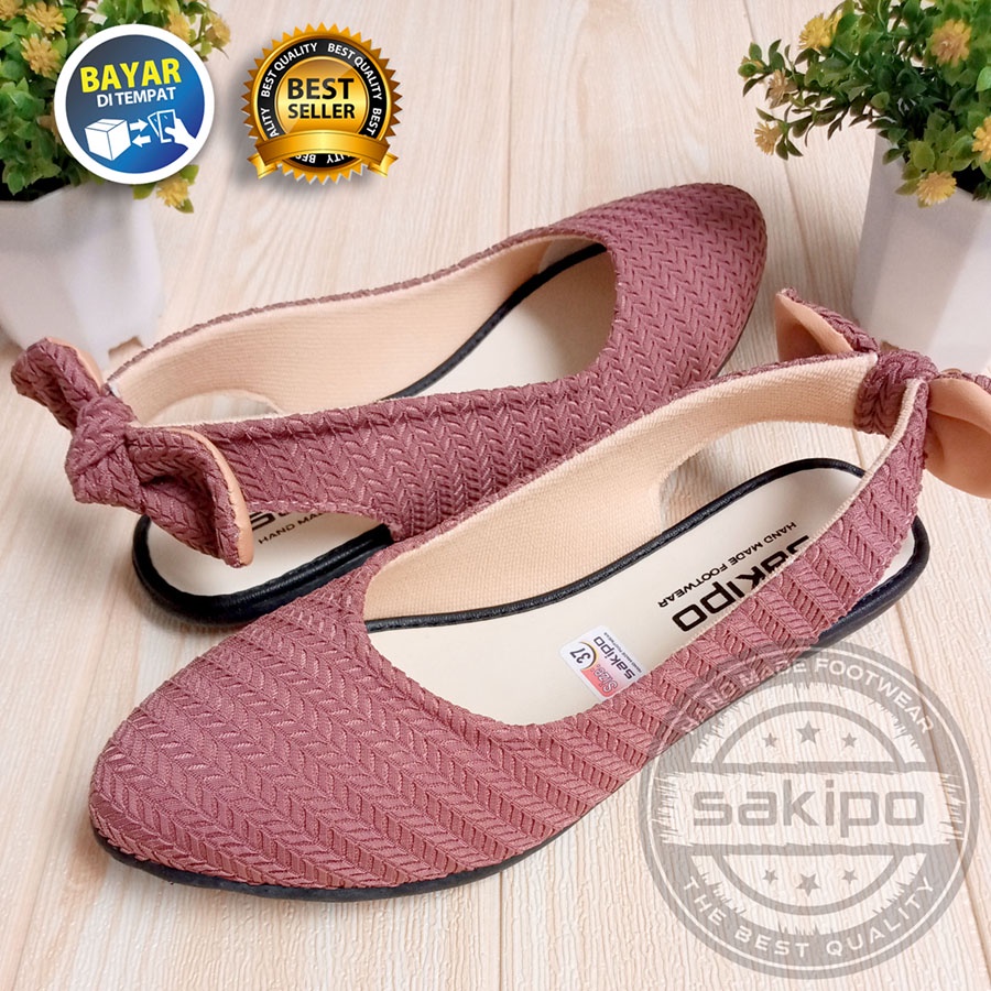 Flatshoes Wanita Slop Pita Belakang Remaja Dewasa Balet Rajut Perempuan Kece Terbaru Murah Sakipo