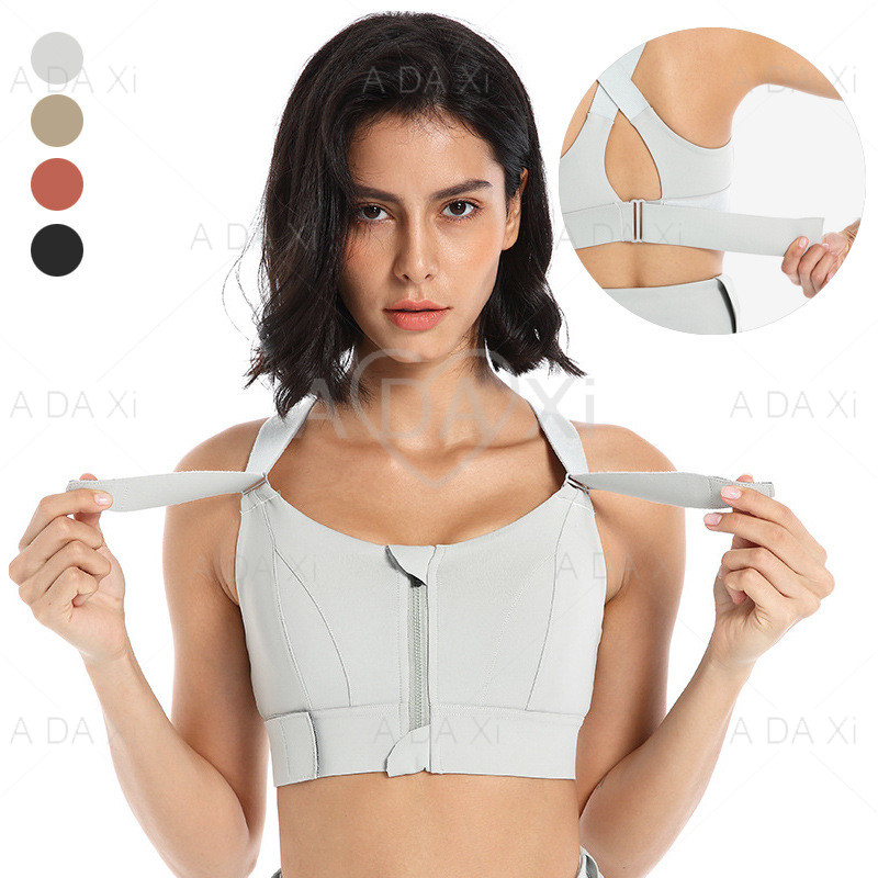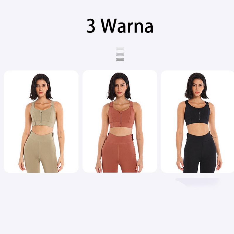 Bra Olahraga Wanita Premium 3 Warna Push Up Elastis Plus Ukuran Tank Top Ritsleting Depan Velcro Anti Guncangan Adjustab