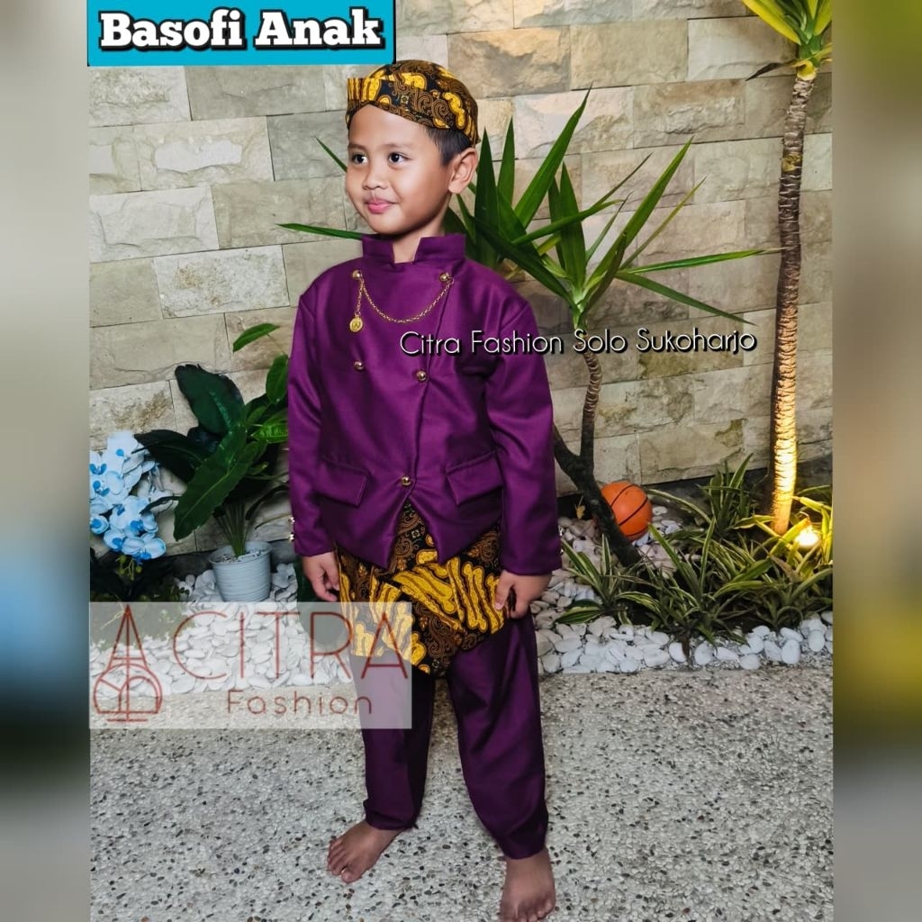 Setelan Basofi Anak Batik Coklat(Blangkon)