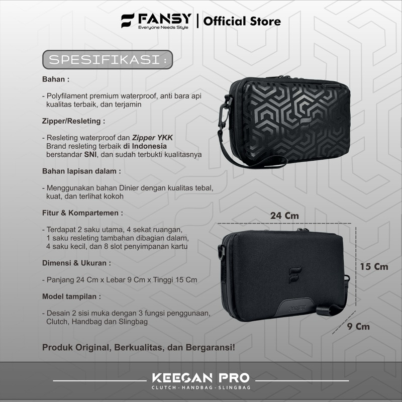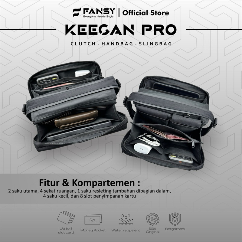 Fansy Keegan Pro - Clutch Pria Slingbag Multifungsi Handbag Waterproof Dan Anti Bara Api