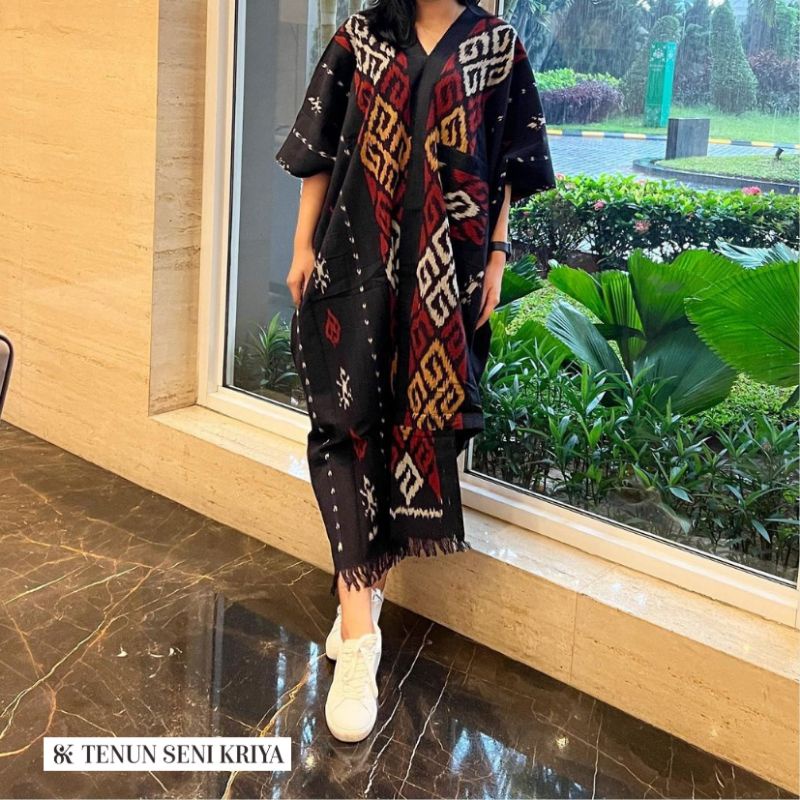 Dress Tenun Terbaru - Dress Terbaru - Gamis Terbaru - Dress Tenun Etnik - Gamis Tenun Midi Dress - Baju Ten