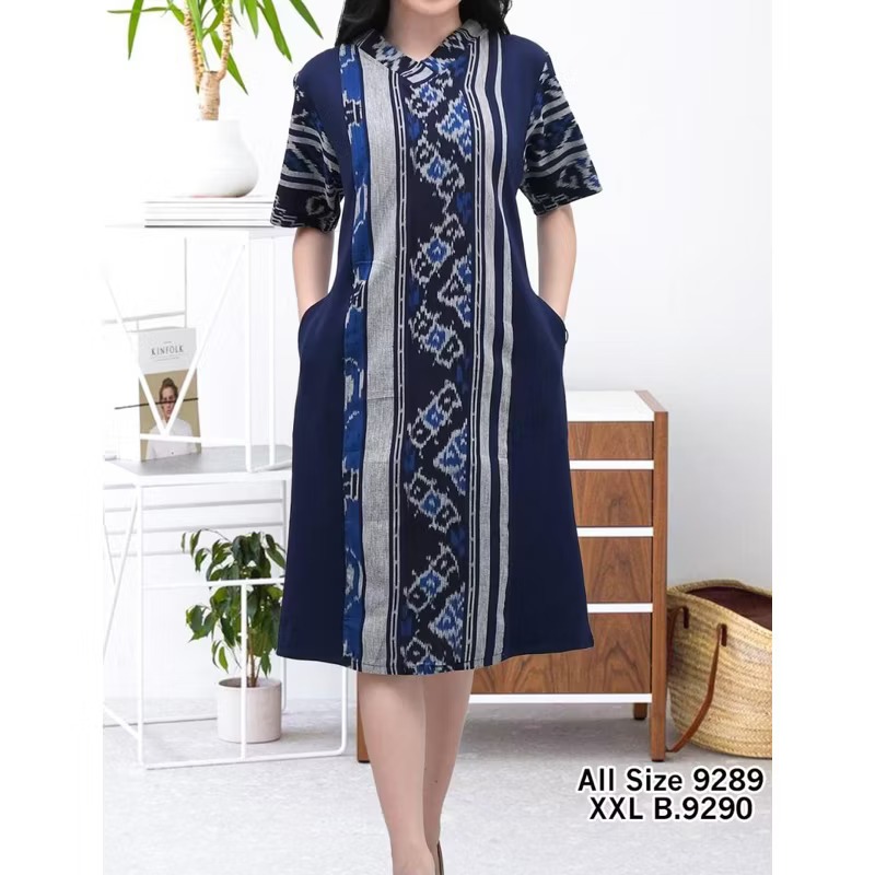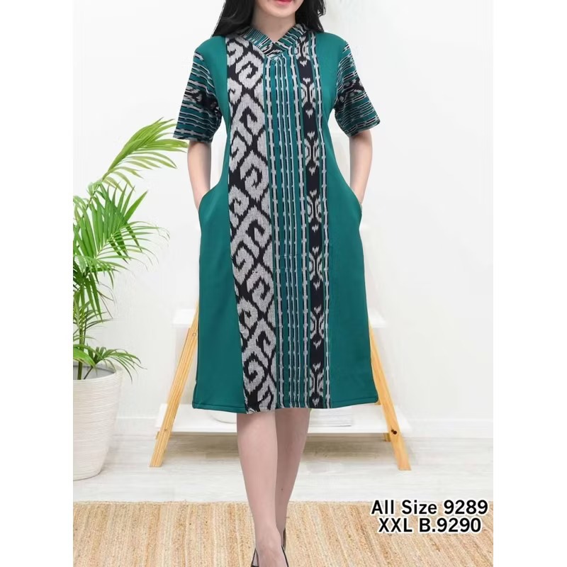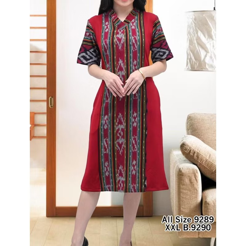 Dress Tenun Pesta Mix Katun Toyobo Leher V