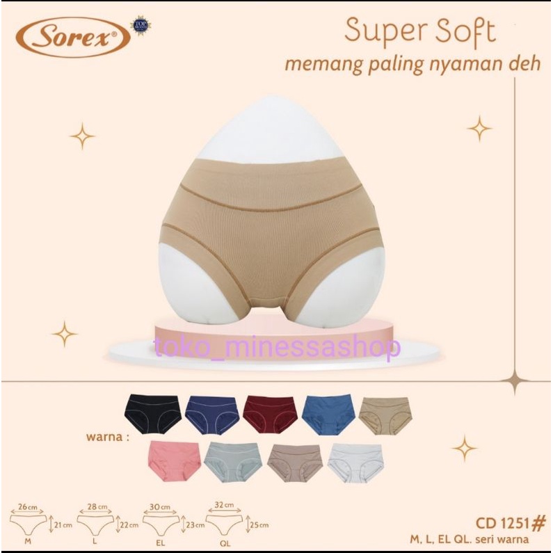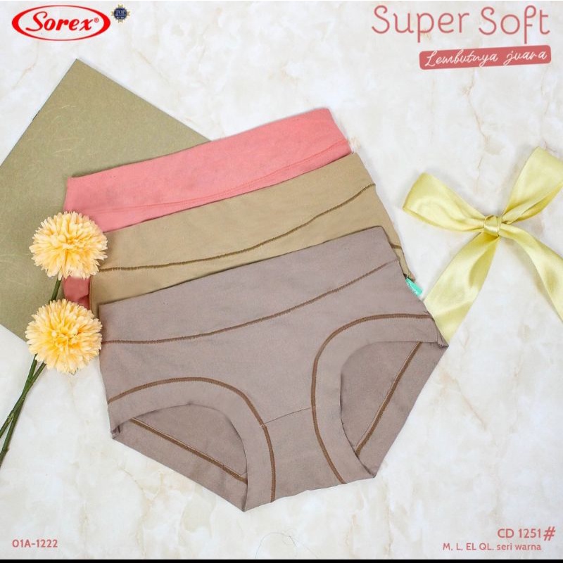 (Lusinan 12Pcs)Celana Dalam Wanita Sorex 1251-1255 Bercutting Midi Semi Boxer Super Soft