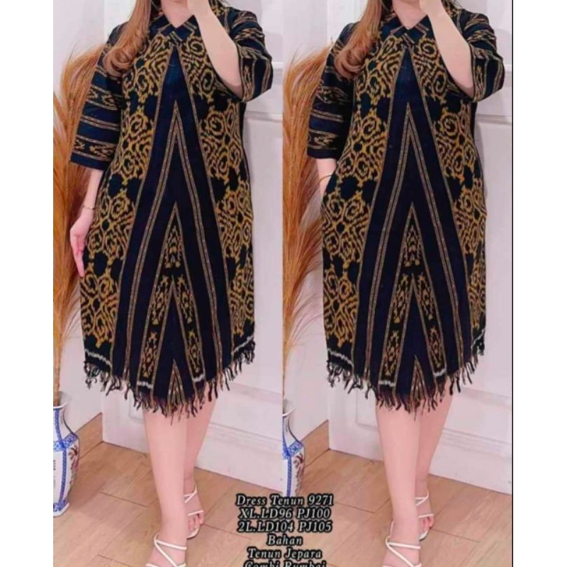 Dress Tenun Wanita,Dress Rumbai Wanita, Dress Acara,Dress Kondangan