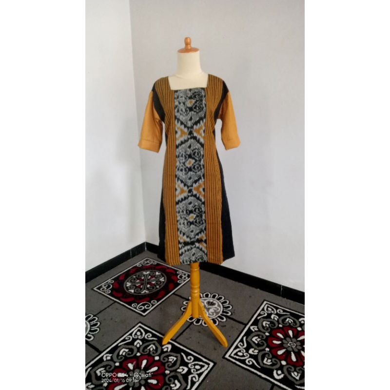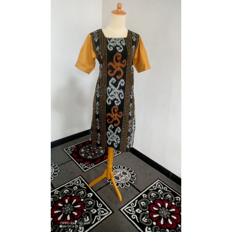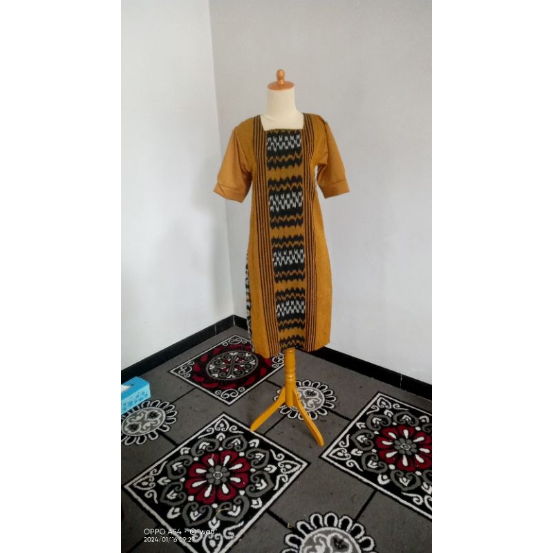 Baju Tenun Wanita Dress Tenun Etnik, Kombinasi Lengan Katun Toyobo, Dress Pesta