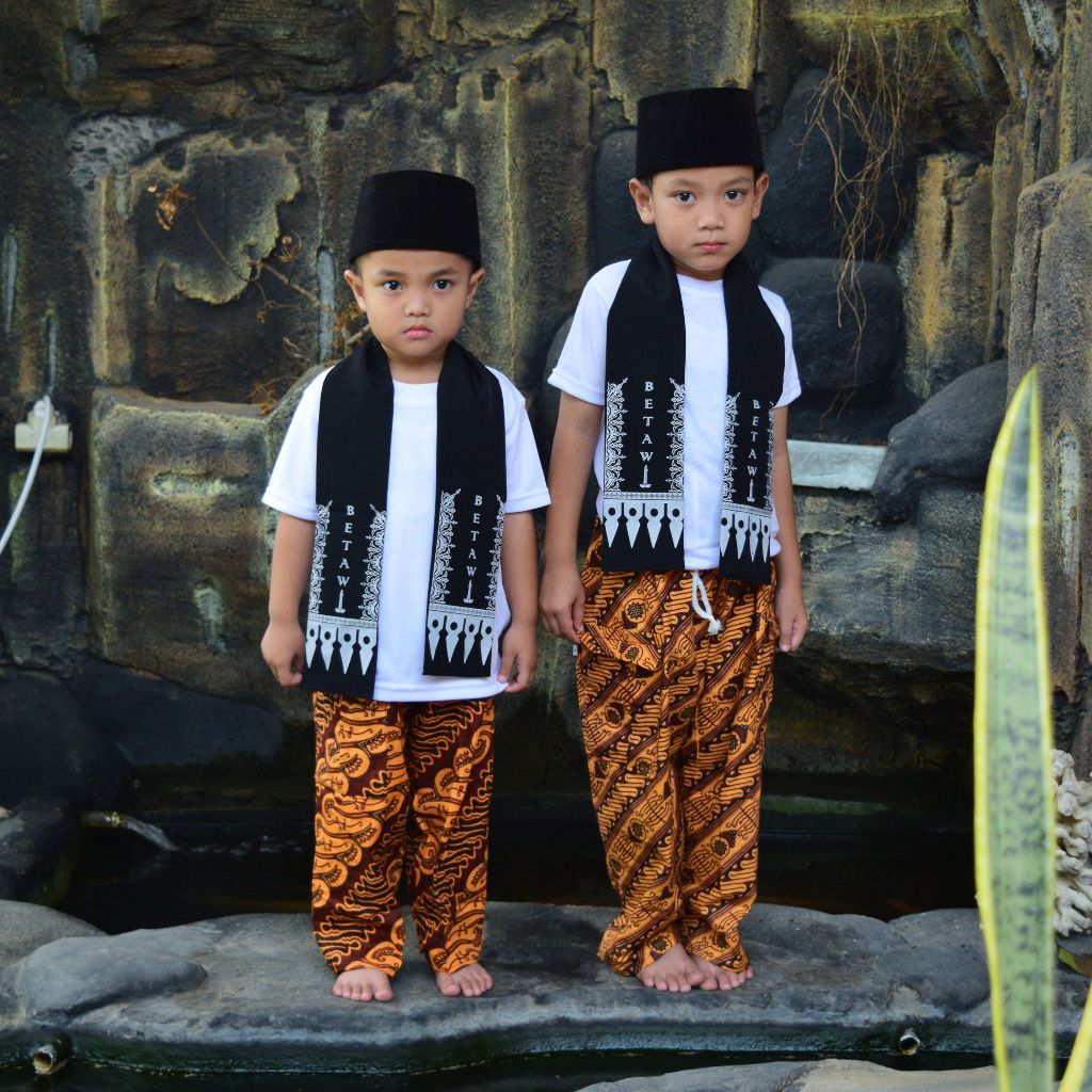 Paket Baju Betawi Anak Celana+Baju+Peci+Selendang Terbaru/Pakaian Adat Betawi Anak Terbaru