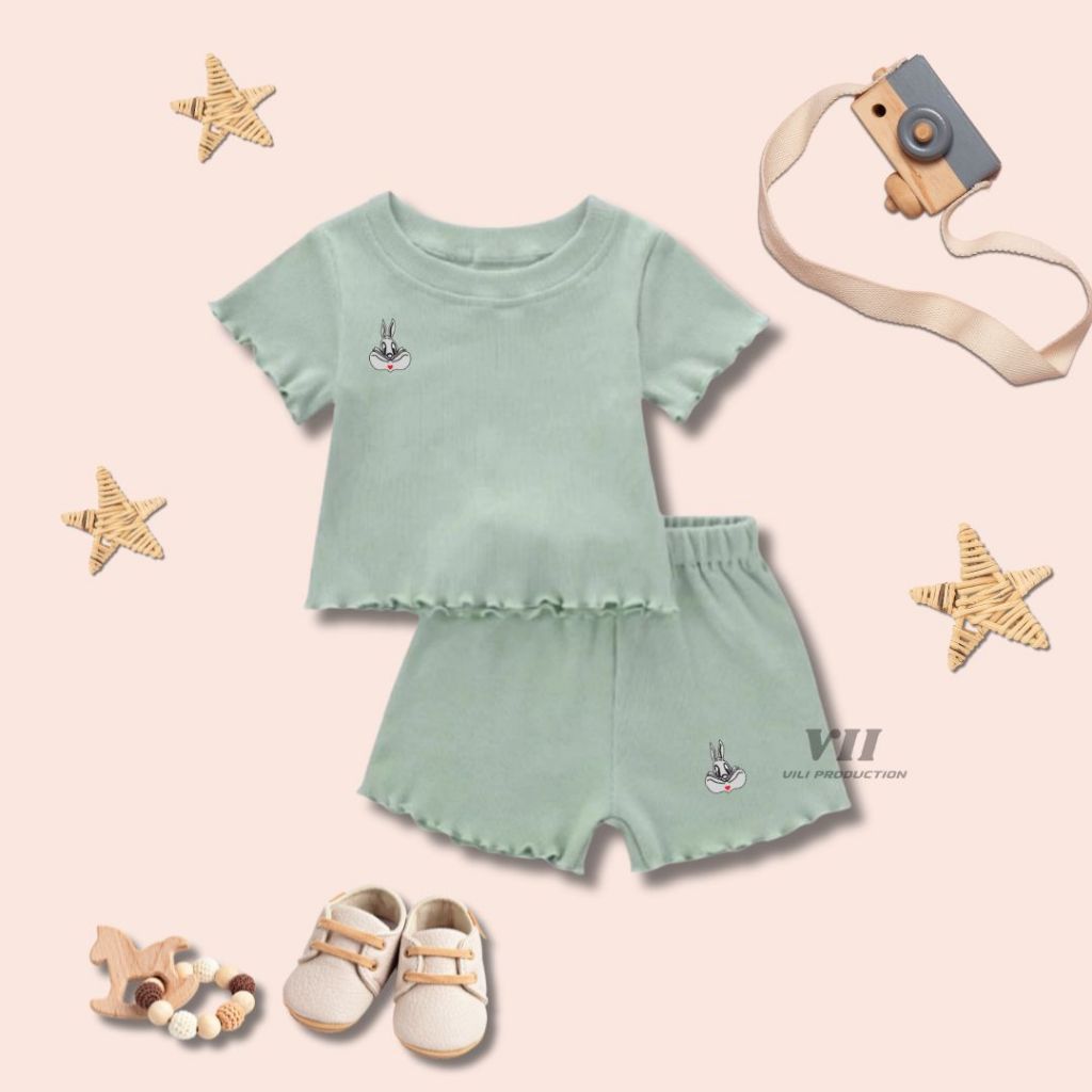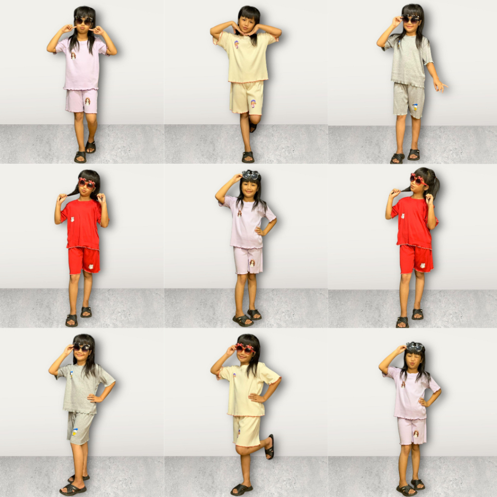 Paket Hemat 3 Pcs Stelan Anak Perempuan Rib Spandek Usia 2-13 Tahun, Bahan Lentur Tidak Mudah Melar