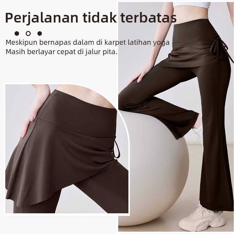 Fuyogi Legging Rok Celana Olahraga Wanita Highwaist Skirt Pant Tali Serut Pilates Yoga Flare Pants