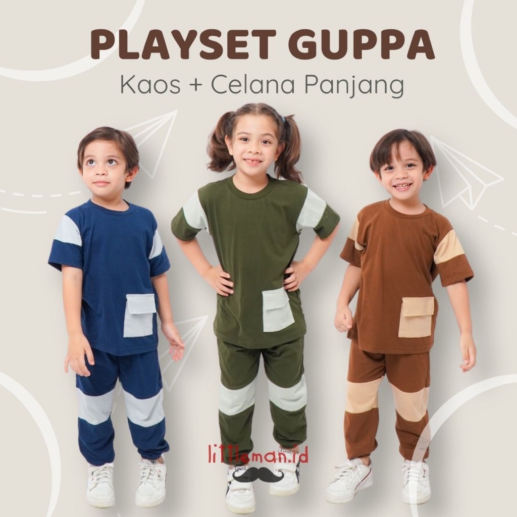 Playset Anak Guppa Series Setelan Kaos Baju Celana Panjang 1-7 Tahun Bahan Premium By Littleman.Id