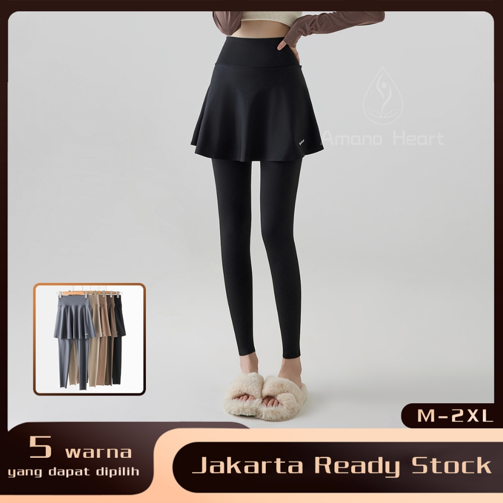 2 In 1 Yoga Celana Sport Wanita Rok Panjang High Waist Jumbo Polos Gym Fitness Black Yoga Pants Plus Size Ru