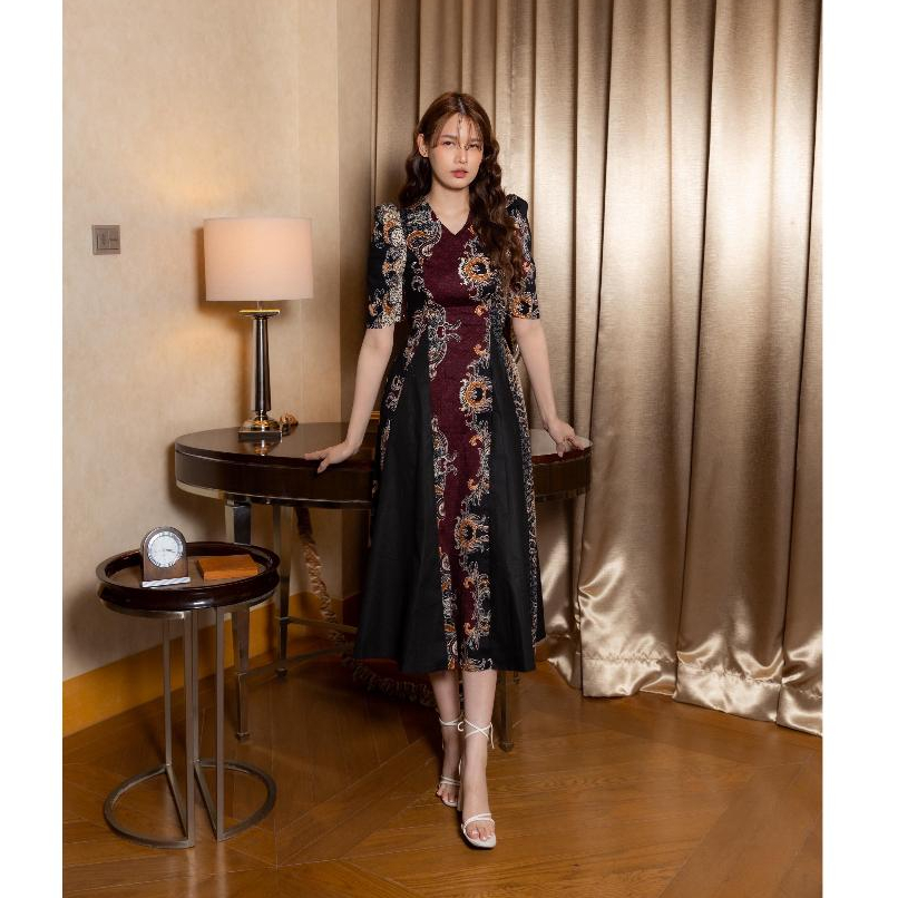 Herfit Alifah Dress Batik Midi Kombinasi Katun Strecth(Dress Batik Pendek)