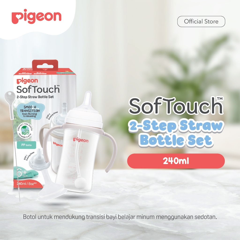 Pigeon Botol Softouch 2-Step Straw Set 240Ml | Botol Susu Transisi | Botol Susu Training Bayi | Anti Kolik Ganda | Ada G
