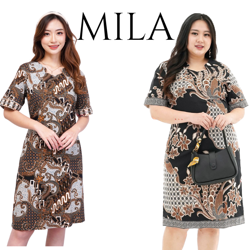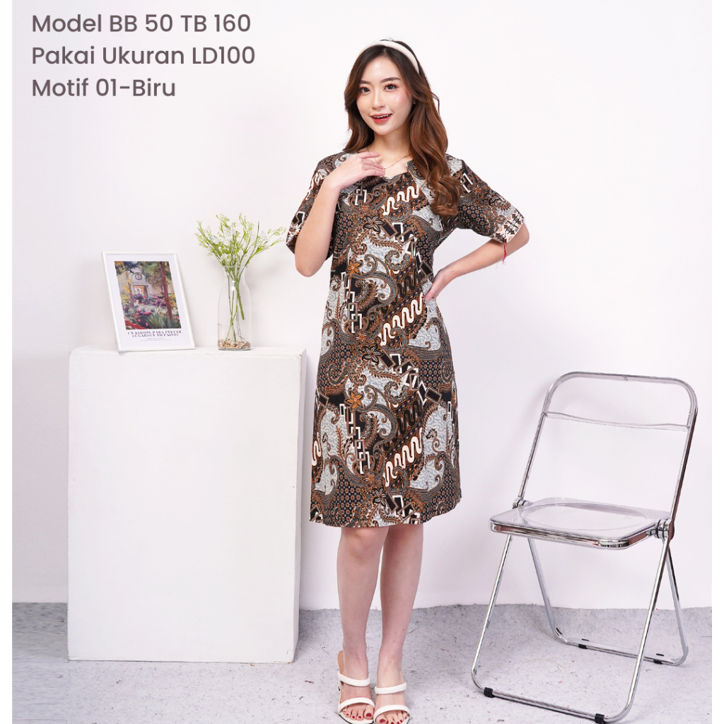 Ld100/110/125/135 Dress Batik Modern Wanita Lengan Pendek Katun Stretch Premium Jumbo Bigsize