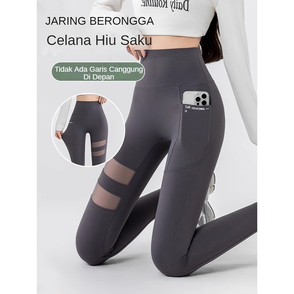 Legging Celana Olahraga Wanita High Waist Polos Yoga Pants Gym Sport Ada Kantong