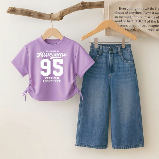 Setelan Anak Perempuan Kaos Awesome 95 Serut Samping Dan Celana Jeans Kulot Baju Ootd Anak Cewek Kekinian Usia 1-12 Tahu