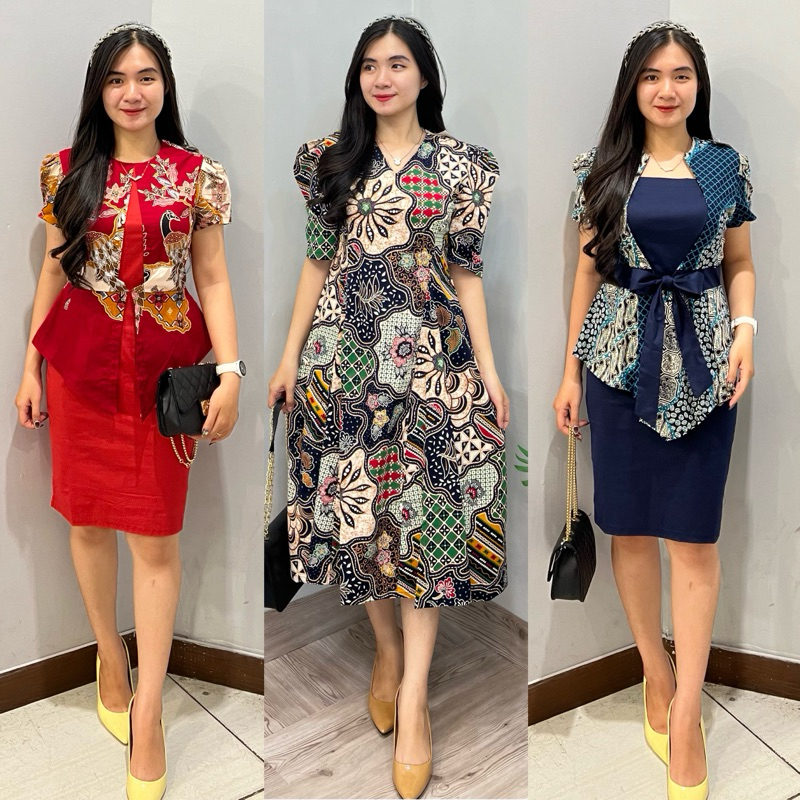 Dress Batik Fashion Wanita Motif Kombinasi || Dress Wanita Fashion / Batik Kerja / Dress Batik Cassual