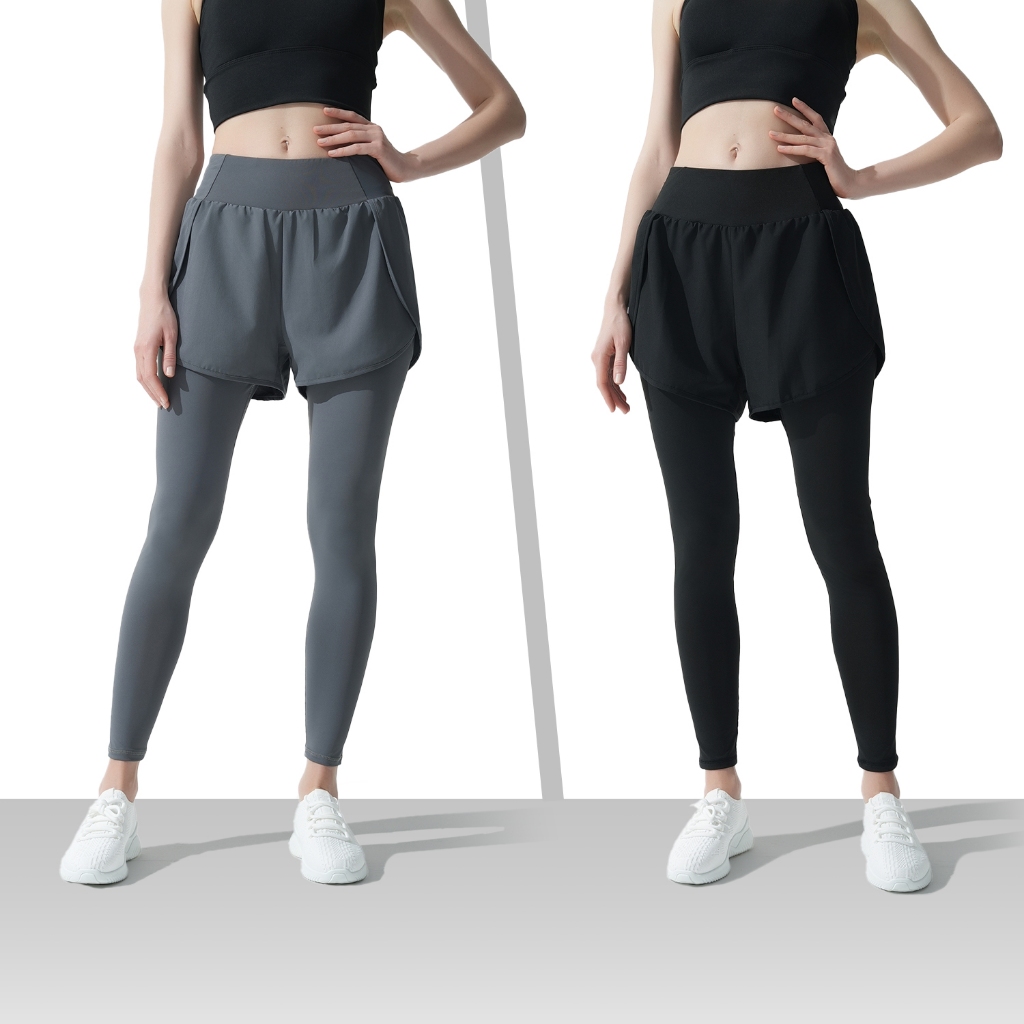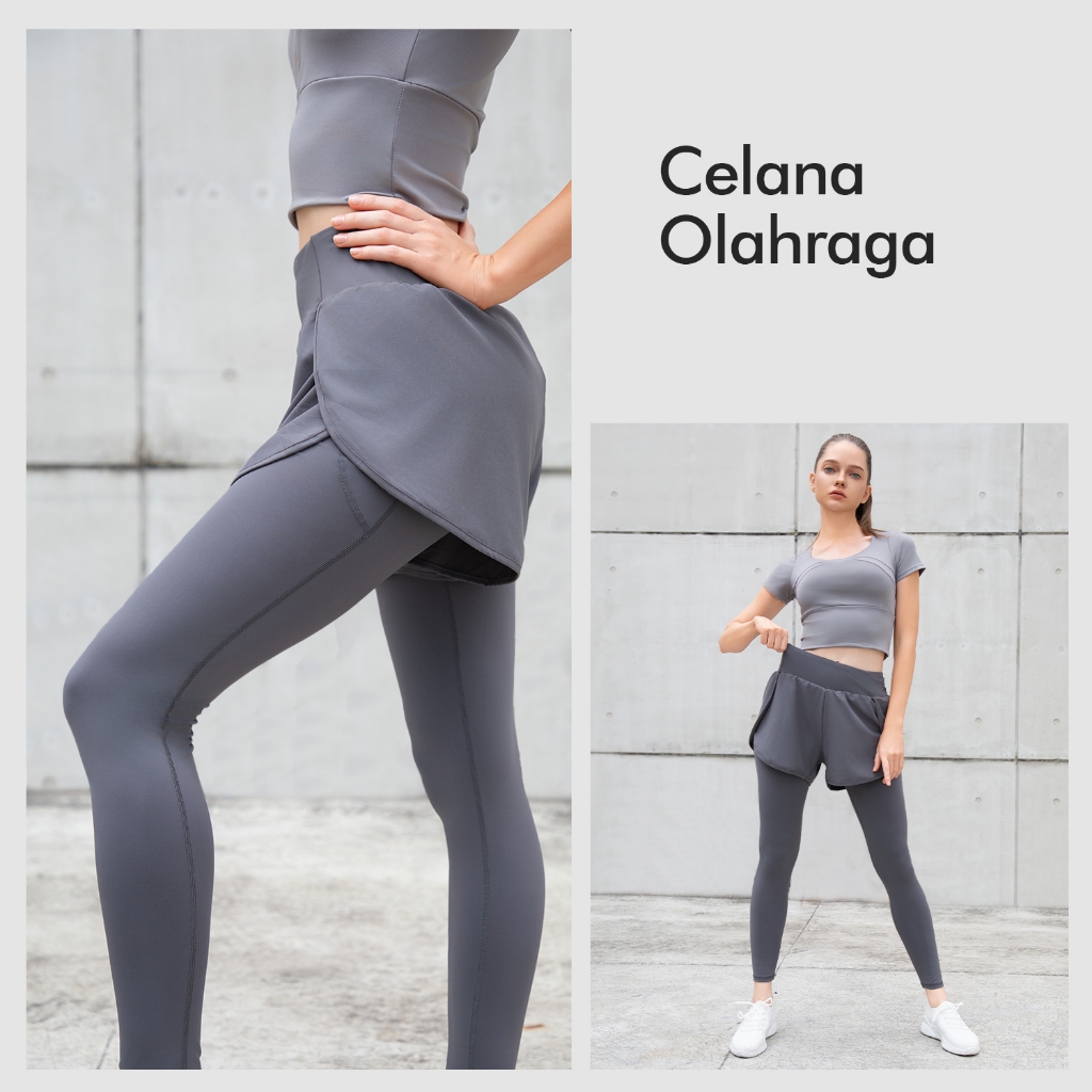 Hapigogo Celana Double Olahraga Wanita Legging High Waist Yoga Pants Sport Dua Lapisan 2 In 1