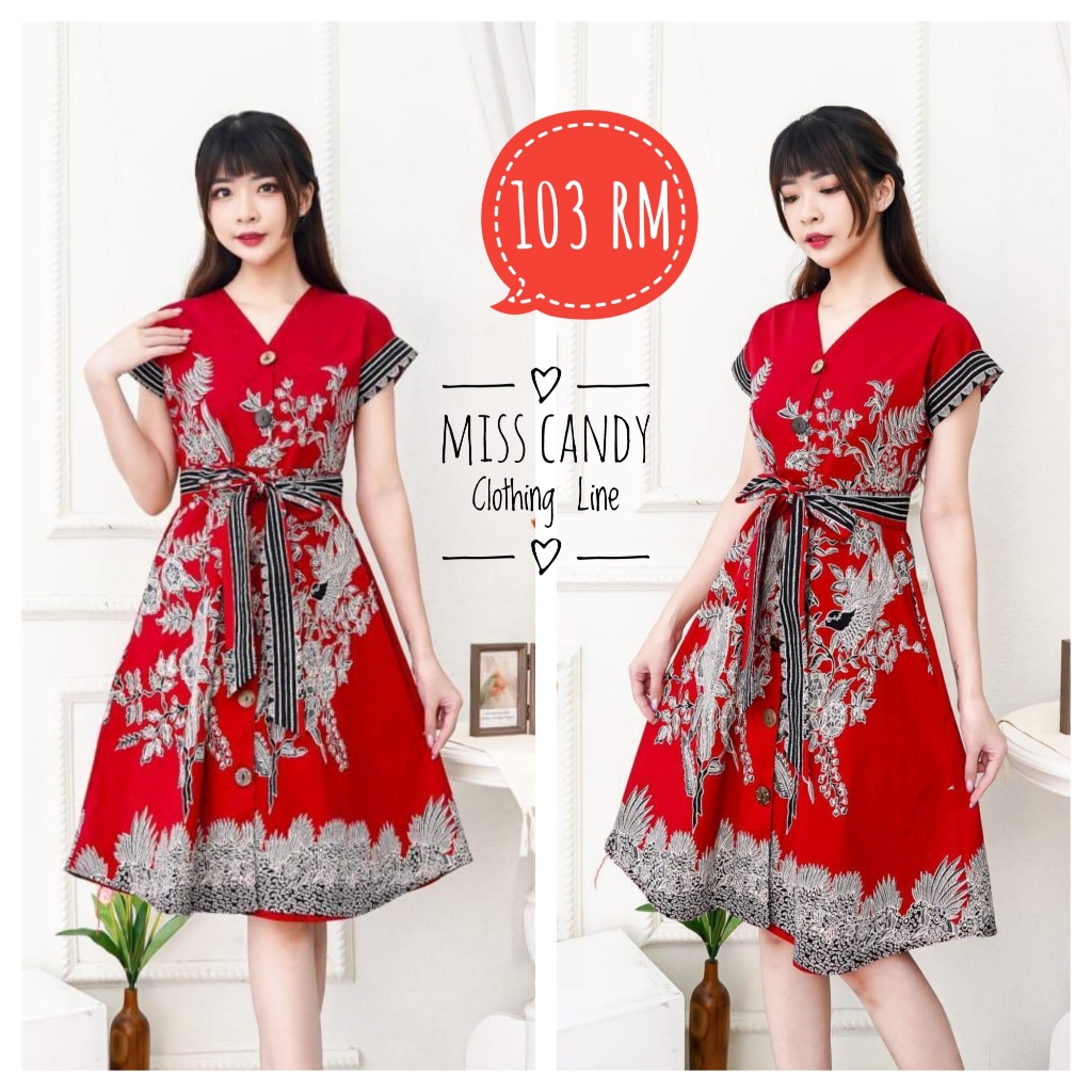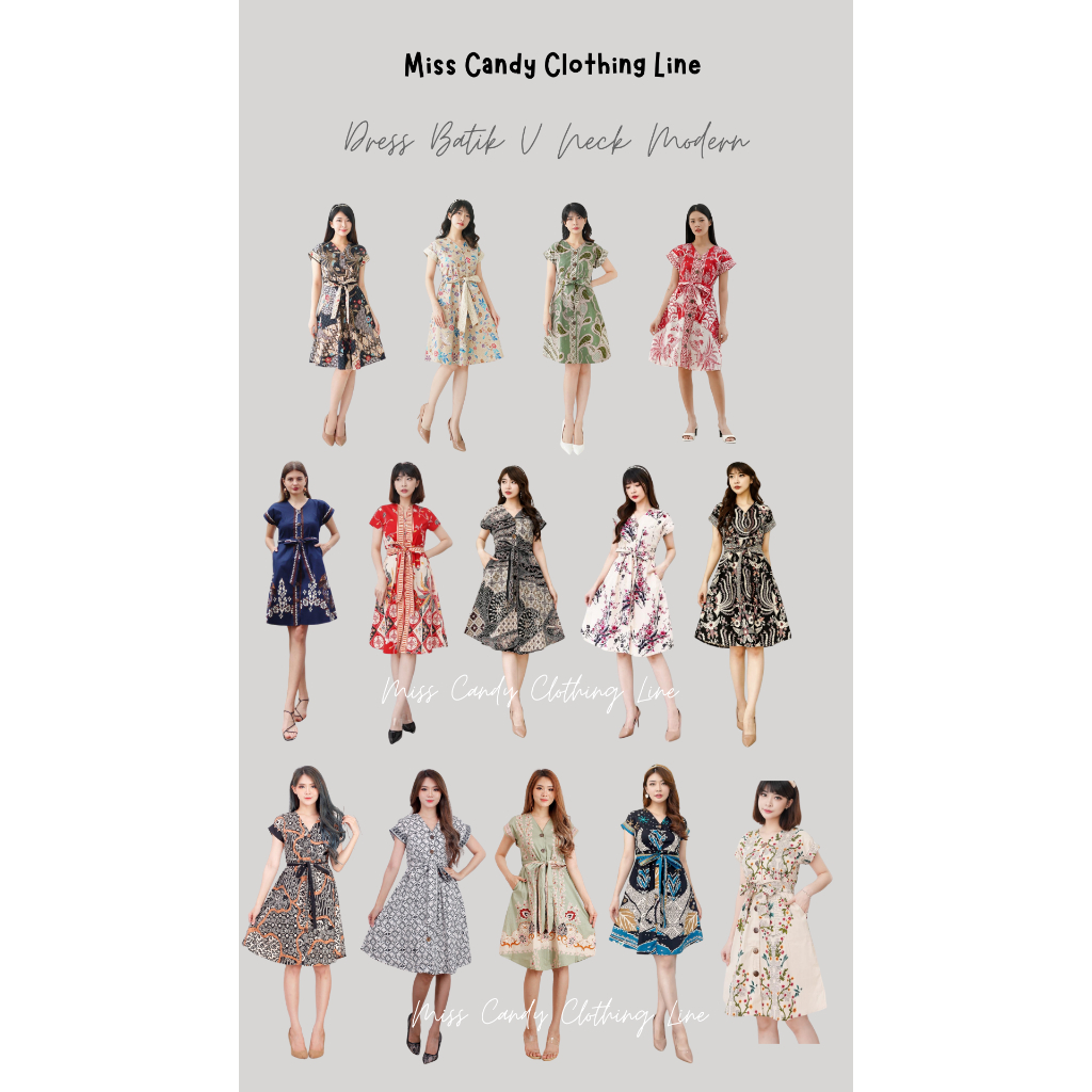 Dress Batik Wanita Modern V Neck 103 Katun Stretch Tangan Pendek