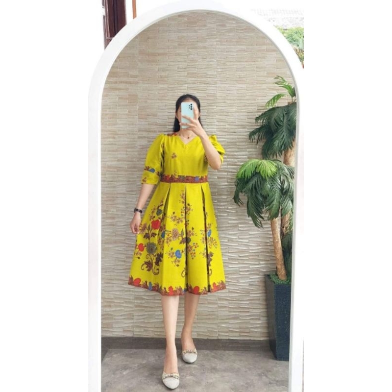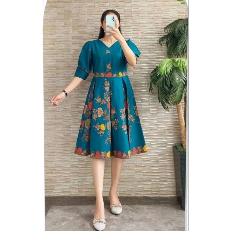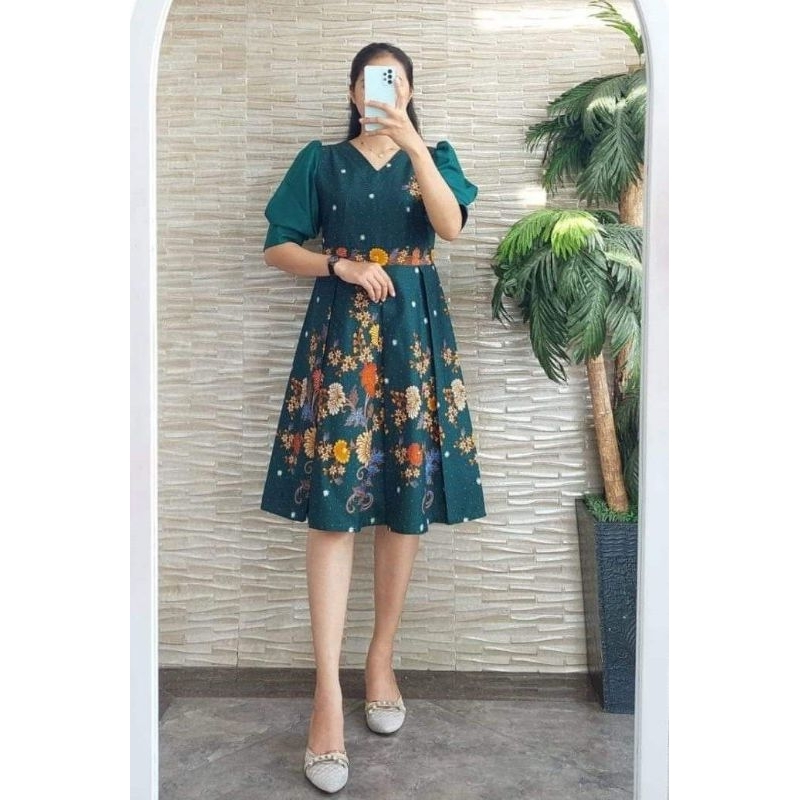 Dress Batik Premium Pesta Lengan Balon Dress Batik Terbaru Lengan Pendek Balon Dress Batik Modern Jumbo Ld 120 Dress Bat