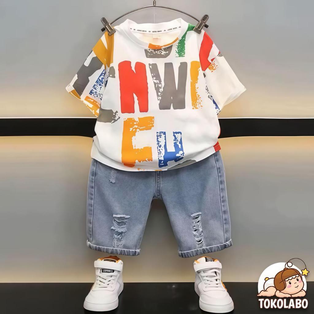Tokolabo - Baju Anak Jeans Pendek 1-5 Tahun Motif Trendy Setelan Anak Laki-Laki Starboy
