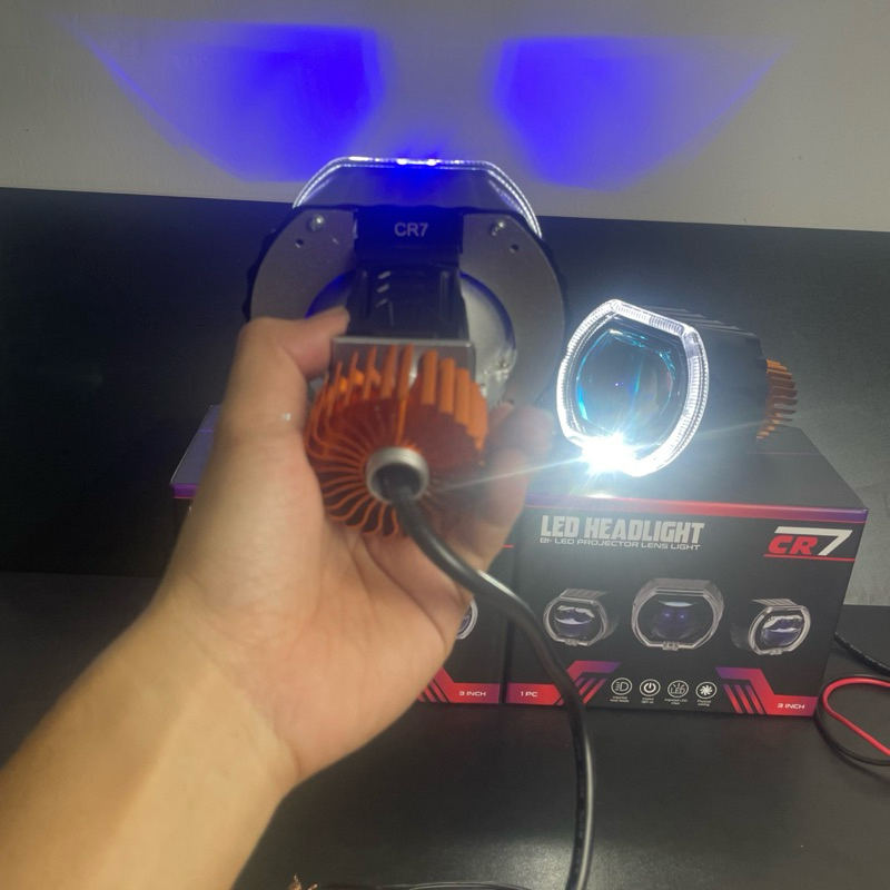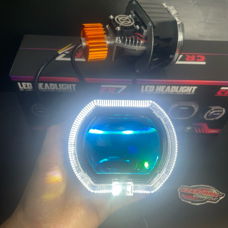 Lampu Projector Biled Original CR7 PREMIUM PRO 4.5 Inch Bluelens Plus Shroud Devil eye Dengan Kipas Pendingin