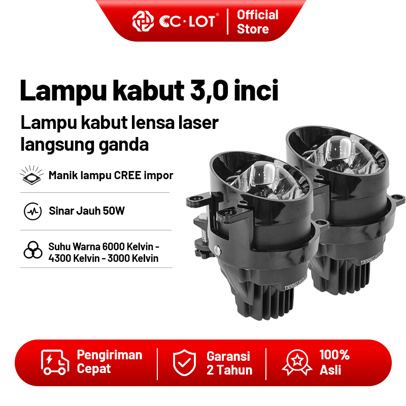 CCLOT Laser 3 Inch Biled 3 inch Foglamp Projector Lampu Sorot Rendah Putih 30W, Lampu Sorot Tinggi Kuning 50W, Suhu Warna 6000K Lampu Motor Mobil Projie